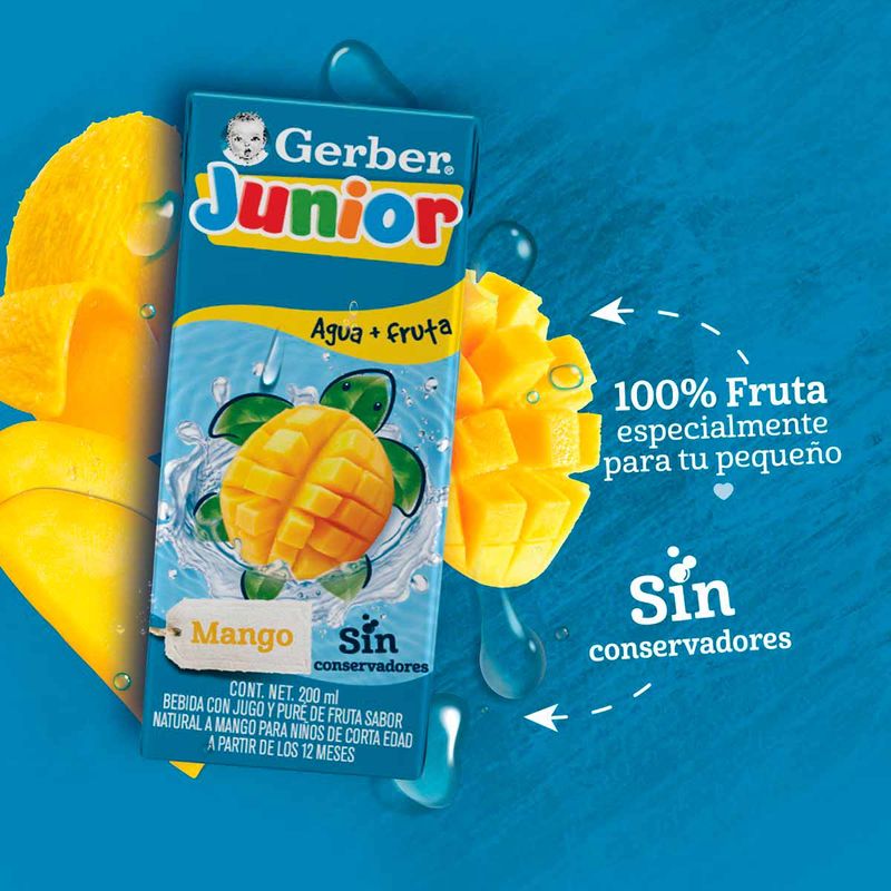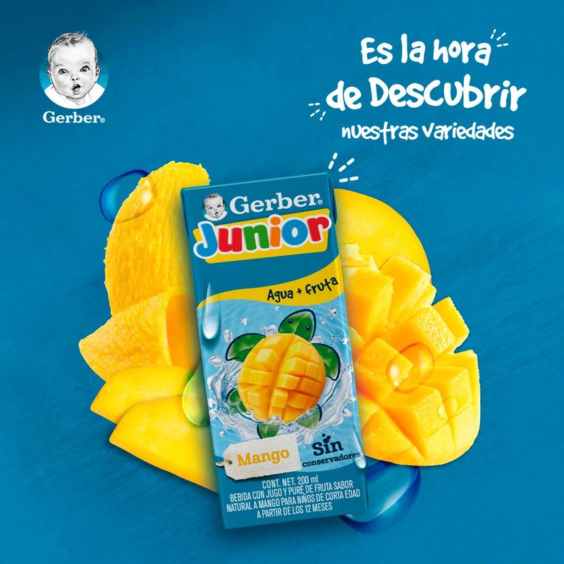 Bebida hidratante Junior splasher etapa 4 bebida para bebé sabor mango tetrapack(alimento para bebé de 1 año en adelante)Las bebidas de 12 meses Junior son la bebida para bebé bebida de bebé con mayor porcentaje de agua. Sin colorantes artificiales Sin saborizantes artificiales Sin azúcar añadida Sin conservadores químicos. Con las bebidas hidratantes de Junior 4ta etapa tu bebé pueda seguir disfrutando de todos los sabores de Gerber que tanto le encantan.