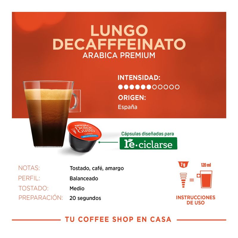 Cápsula de Café Nescafé Dolce Gusto Lungo Descafeinado 16 Cápsulas