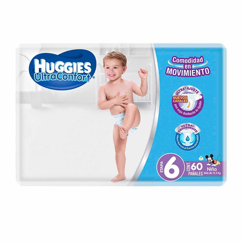 Huggies UltraConfort Etapa 6 para Niño 60 piezas es el pañal más cómodo y ligero que se adapta a cada movimiento de tu bebé.