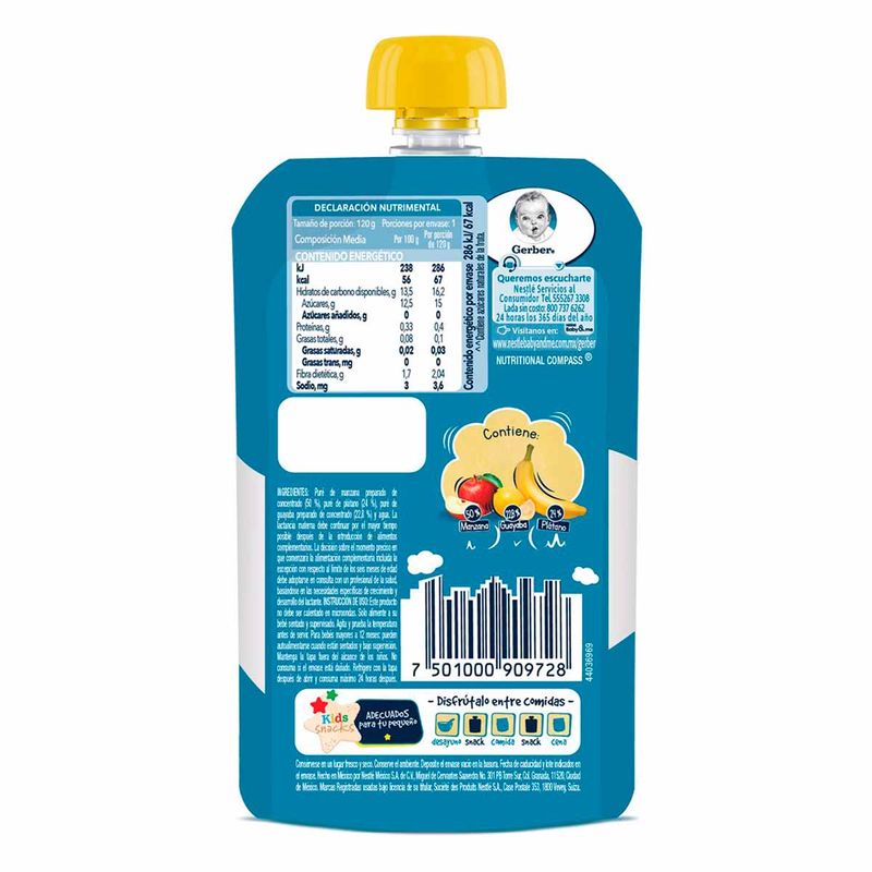 Papillas para bebé Gerber Junior etapa 4 pouch de manzana guayaba plátano :(alimento para bebé de 1 año en adelante)Las papillas de 12 meses Gerber Junior son el snack para bebé Papilla de fruta natural cosechada especialmente para tu bebé Sin colorantes artificiales Sin saborizantes artificiales Sin azúcar añadida Sin conservadores químicos Con los Junior Pouch de Gerber fomentas la autonomía de tu bebé para que pueda seguir disfrutando de todos los sabores de Gerber que tanto le encantan.
