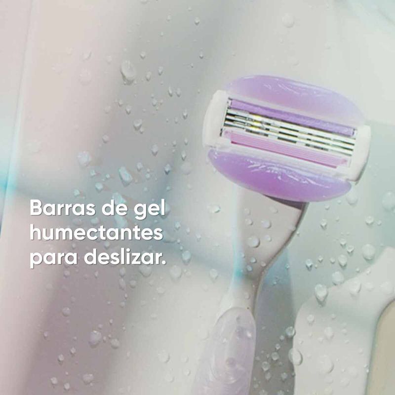 Los repuestos para afeitar Venus Skin Comfort Breeze tienen 3 hojas, banda lubricante con aceites botánicos y barras de gel humectantes para deslizarse por las curvas de tu cuerpo para una depilación suave y al ras.