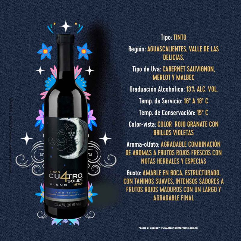 Vino Tinto Mexicano Cuatro Soles Blend de 750ml