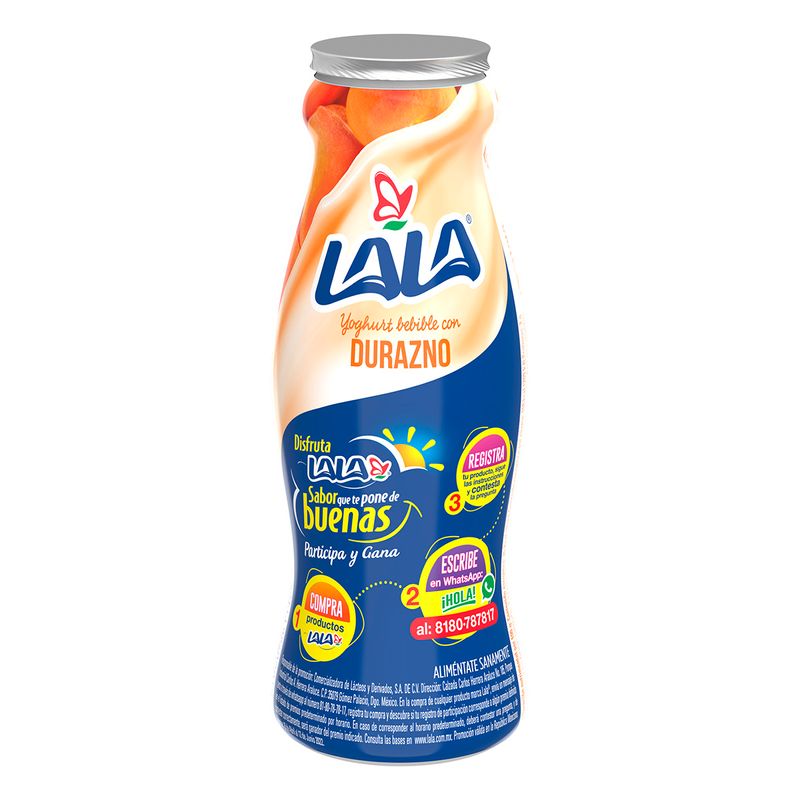 Yoghurt bebible sabor a durazno, hecho con fruta natural
